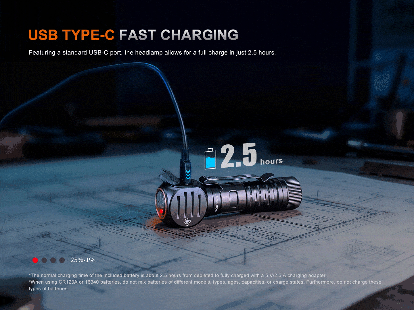 Fenix ARB-L18-4000 battery, Spare O-ring, USB Type-C charging cable