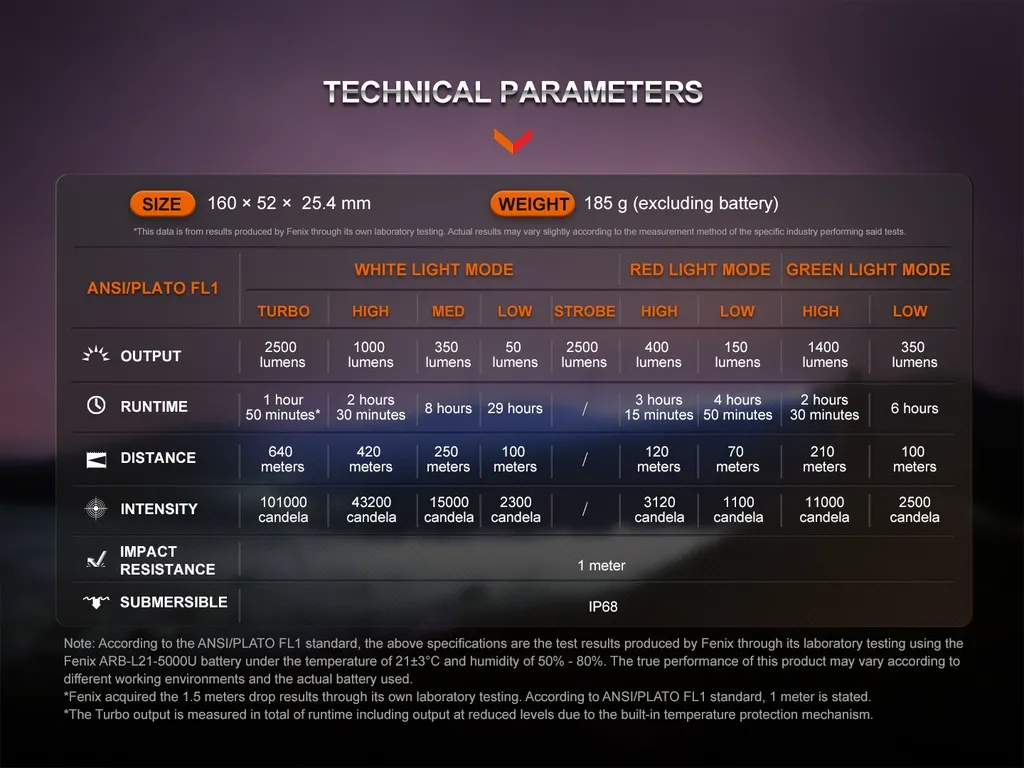 | WHITE TURBO | 2,500 | 1h 50min | 640 meters | 101000 cd |